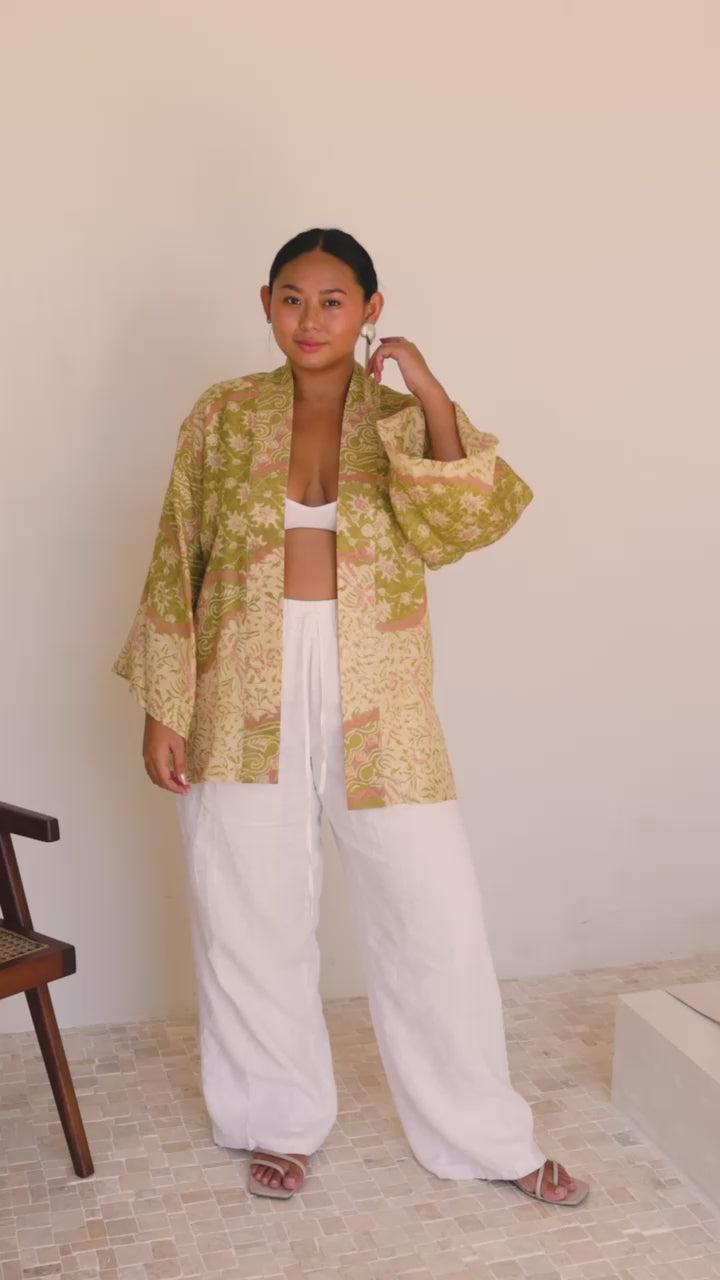 The Kimono is the companion you never want to be separated from. It’s a hug that folds around you, sophisticated and light with a soft-to-the-touch feel. It can be worn at home meditating, at dinners with friends or out and about with your friends.